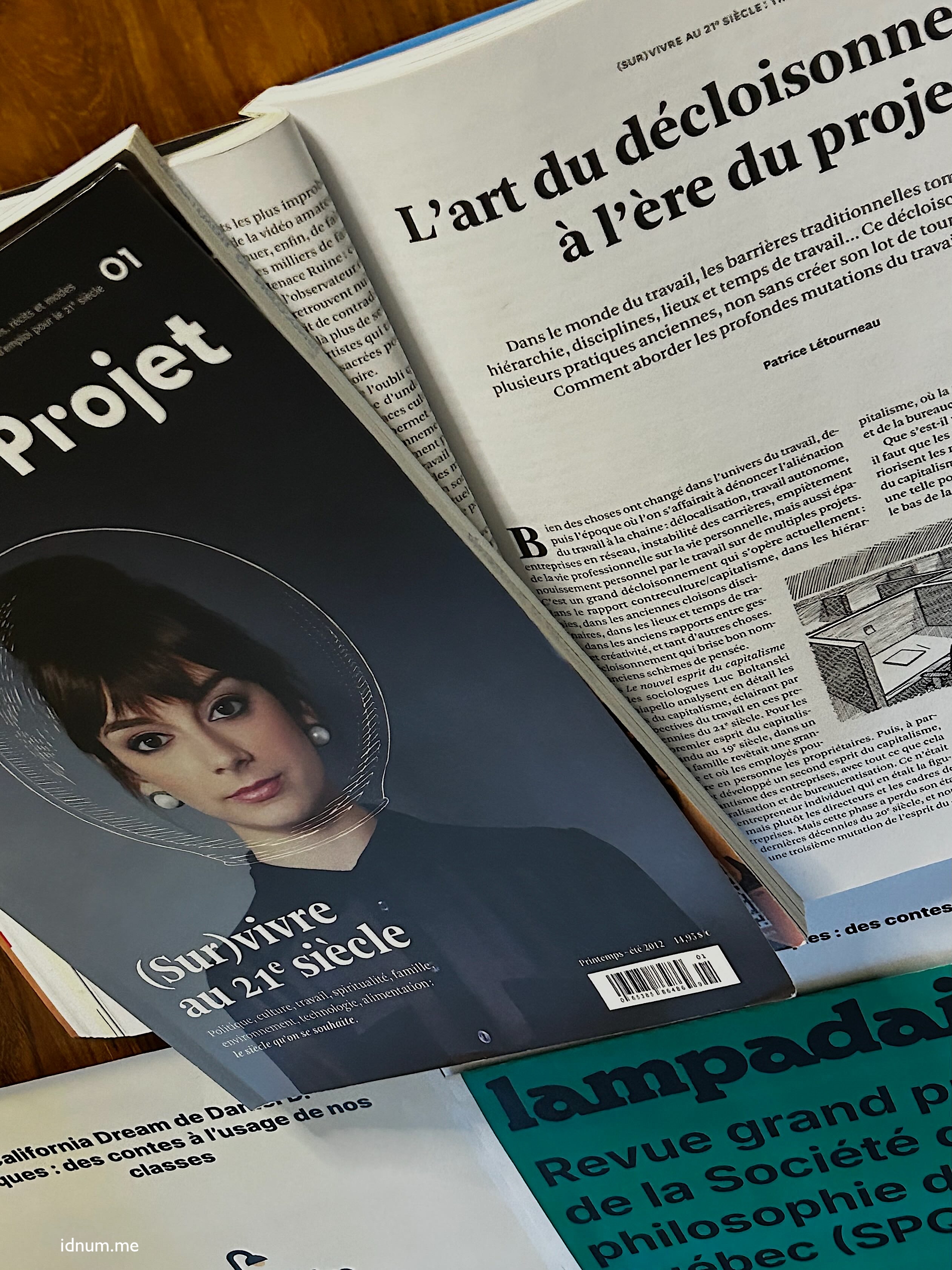 - « L'art du décloisonnement à l'ère du projet » : article dans le magazine Nouveau Projet, vol. 1, no. 01, dossier central «(Sur)vivre au 21e siècle» (NP01), mars 2012, pages 63 à 65 -- maintenant accessible en ligne sur le site de l'éditeur : sur le site d'Atelier 10 : «L'art du décloisonnement à l'ère du projet»